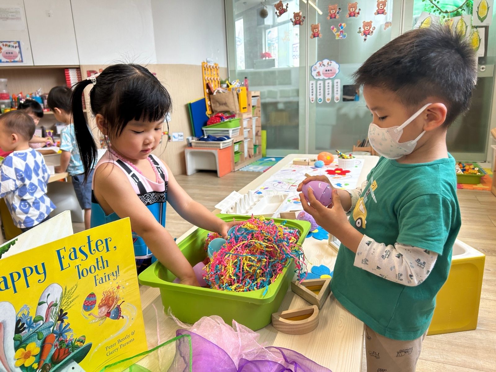 在體能遊戲環節中,孩子們像小兔子般跳躍奔放,並透過團隊合作遊戲學習互助與分享。小小廚師們親手製作了應節食物,包括復活兔造型的麵包,以及可愛的復活節朱古力麥片鳥巢,體驗手作的樂趣。 孩子們還參與了刺激有趣的復活節尋蛋活動,氣氛熱烈!